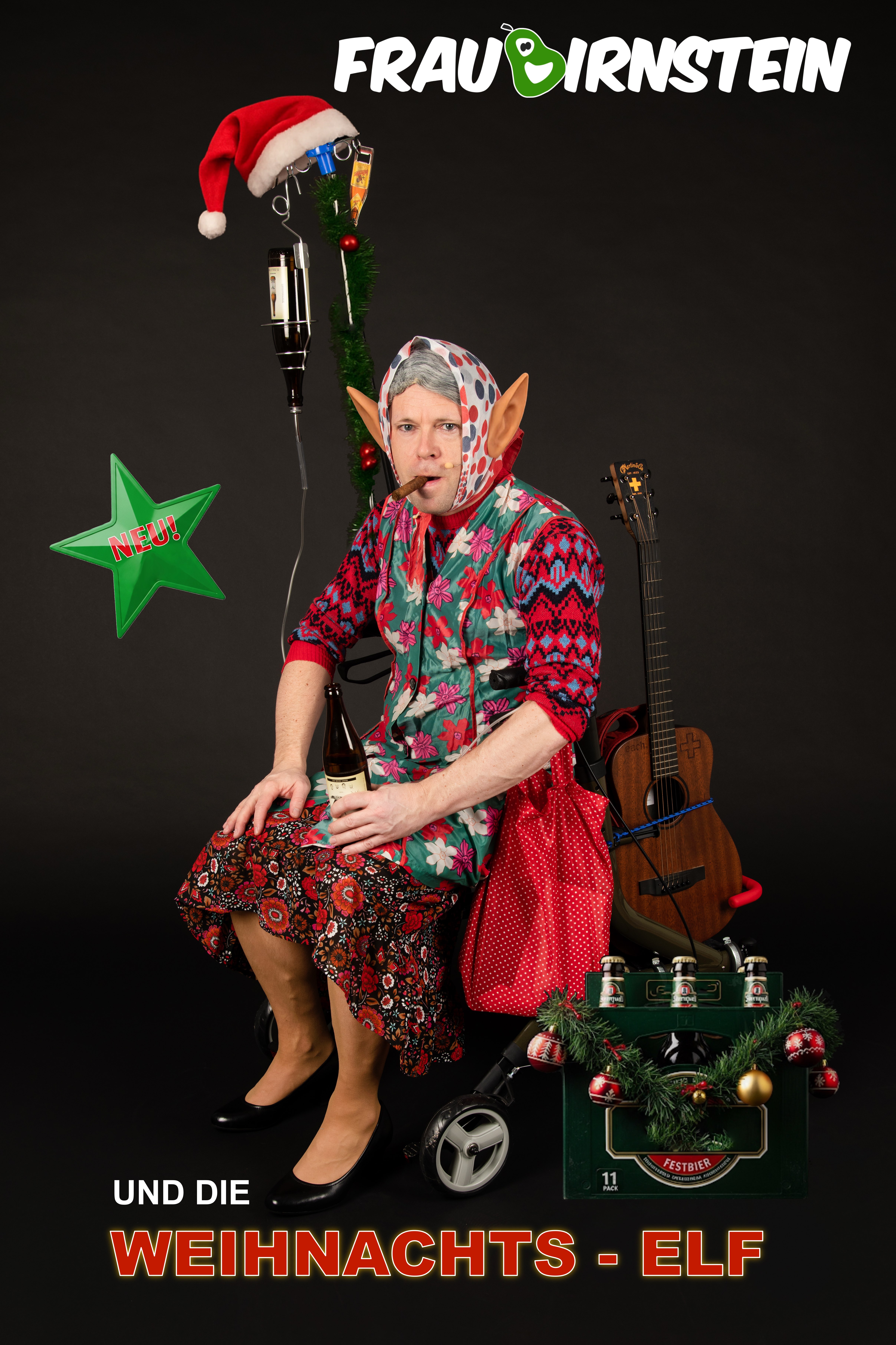 Wenn Frau Birnstein mit Elfenohren und ner Elferkiste Bier in der Gehilfe um die Ecke donnert, biegt sich jeder unter den Baum. Erlebt die verrückte Rollator-Oma in ihrem neuen Weihnachts-Comedy-Programm voller bissigem Humor, frecher Lieder und Geschichten zwischen Glühweinchaos, Geschenke-Desaster und Lebkuchenkoma.