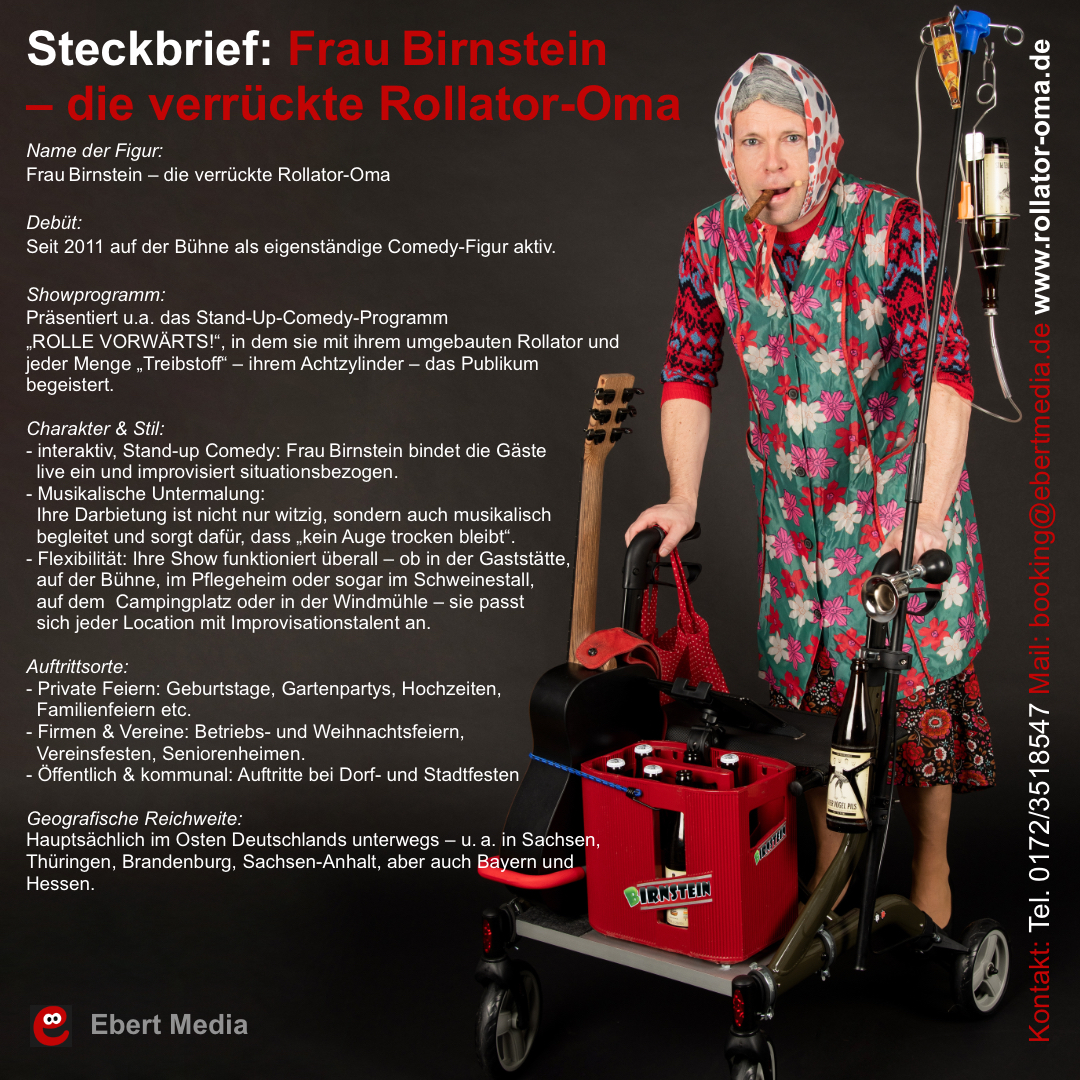 Mein Name heißt FRAU BIRNSTEIN. Beruflich heitere ich eure Feiern auf und sorge für unvergessliche Abende!